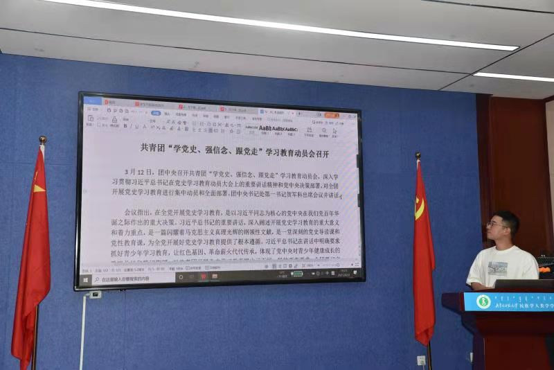 本次会议中重点学习了《习近平总书记在纪念五四运动100周年讲话》、《习近平总书记在清华大学考察时讲话》、《习近平总书记在党史学习教育动员大会上的讲话》等重要讲话精神。之后,同学们就本次学习分享了一些自己的想法和感悟。
