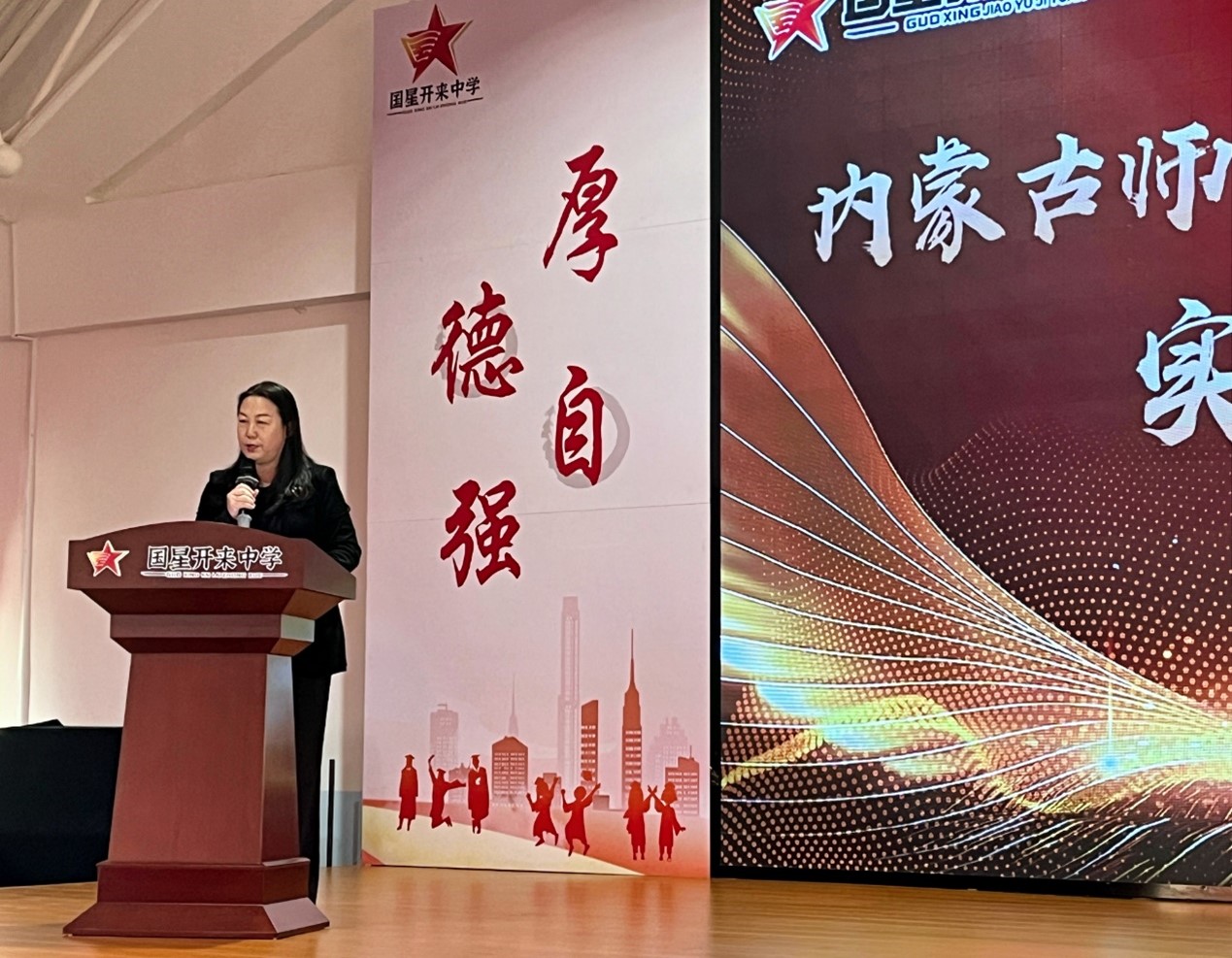 公司党委书记包凤兰教授在仪式上发言,对国星中学为实习员工提供的实践机会和学习平台表示感谢,未来将继续加强与国星中学的合作,共同培养更多高素质的教育人才;同时向同学们表达了美好祝愿。