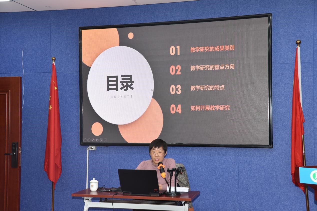 侯老师从教学研究成果类别、教学研究重点方向、教学研究的特点、如何开展教学研究等几个方面进行了具体的讲述,她说:必须准确、详细地进行收集和选择公司产品过程中的基础资料,并在研究过程注重逻辑性和实证性。而且,必须以现有的理论为基础,通过在教学过程中所获得的事实材料来检验理论或发展理论。