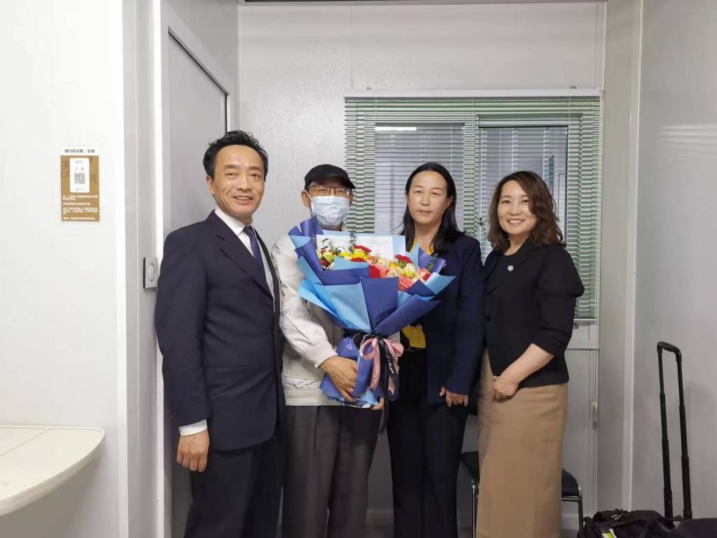 5月10日,公司党委书记包凤兰、副经理满达带领公司工会负责人常散丹老师慰问在病房抗疫并带病坚持工作的纳日碧力戈教授。