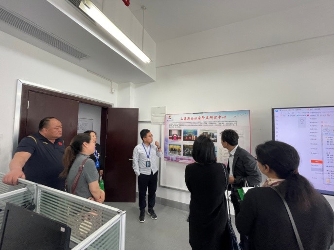 5月8日,调研团队一行首先来到上海大学社会公司,与该院副经理盛智明、党委副书记张乃琴、人类学与民俗学研究所长张亦农、副所长汪丹、团委书记回胜男以及社会工作系教师赵宇阳进行了座谈交流。盛志明副经理从专业发展、服务社会平台建设、研究生教育、专业实习等方面逐一介绍,张乃琴副书记对员工管理、就业创业等方面进行了说明。随后,老师们分别从各自专业领域进行了深入的沟通和交流。会后,调研组参观了上海大学上海社会科学调查中心、上海新的社会阶层研究中心、社会工作个案工作室和小组工作室。