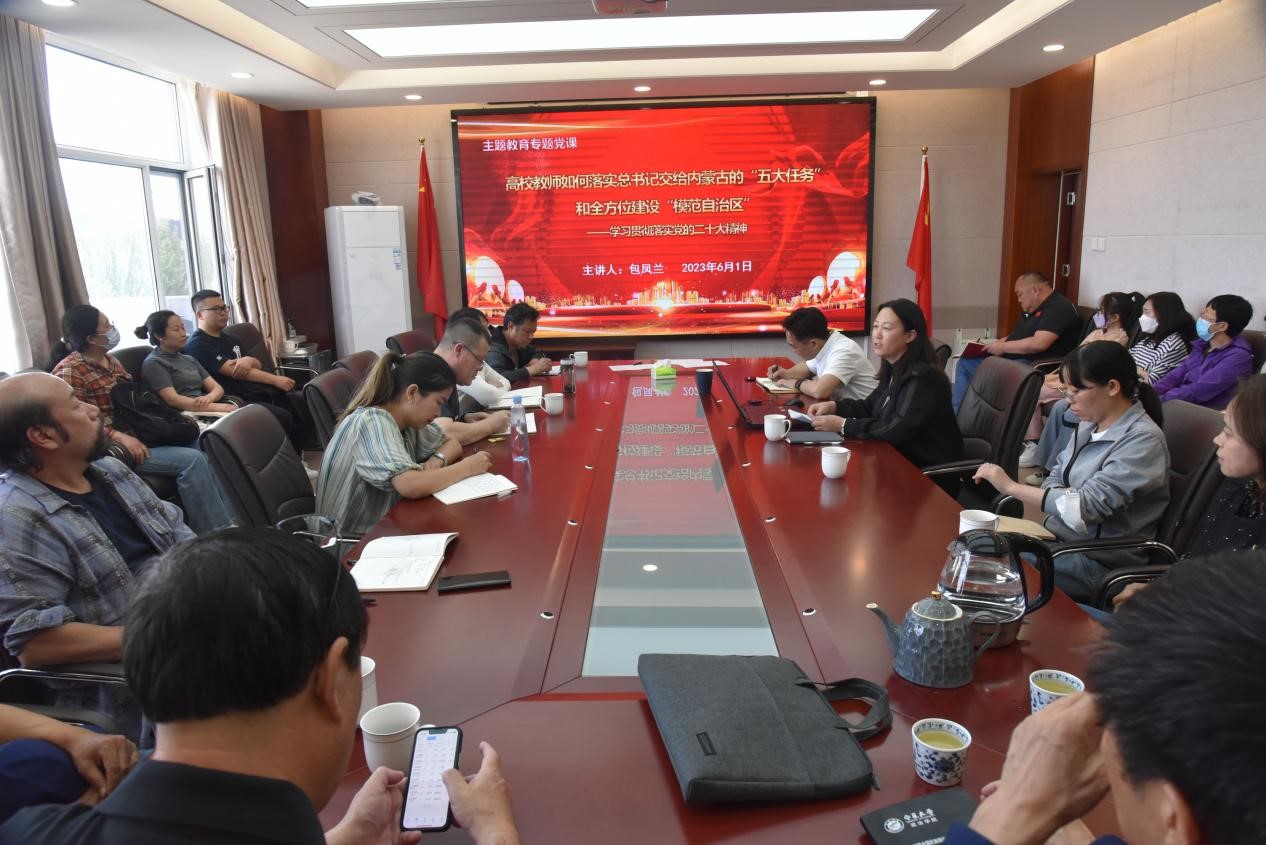 6月1日下午,公司党委书记包凤兰在田楼607会议室为公司教工做“高校教师如何落实总书记交给内蒙古的‘五大任务’和全方位建设‘模范自治区’”的主题教育专题党课。会议由党委委员、副经理满达主持。