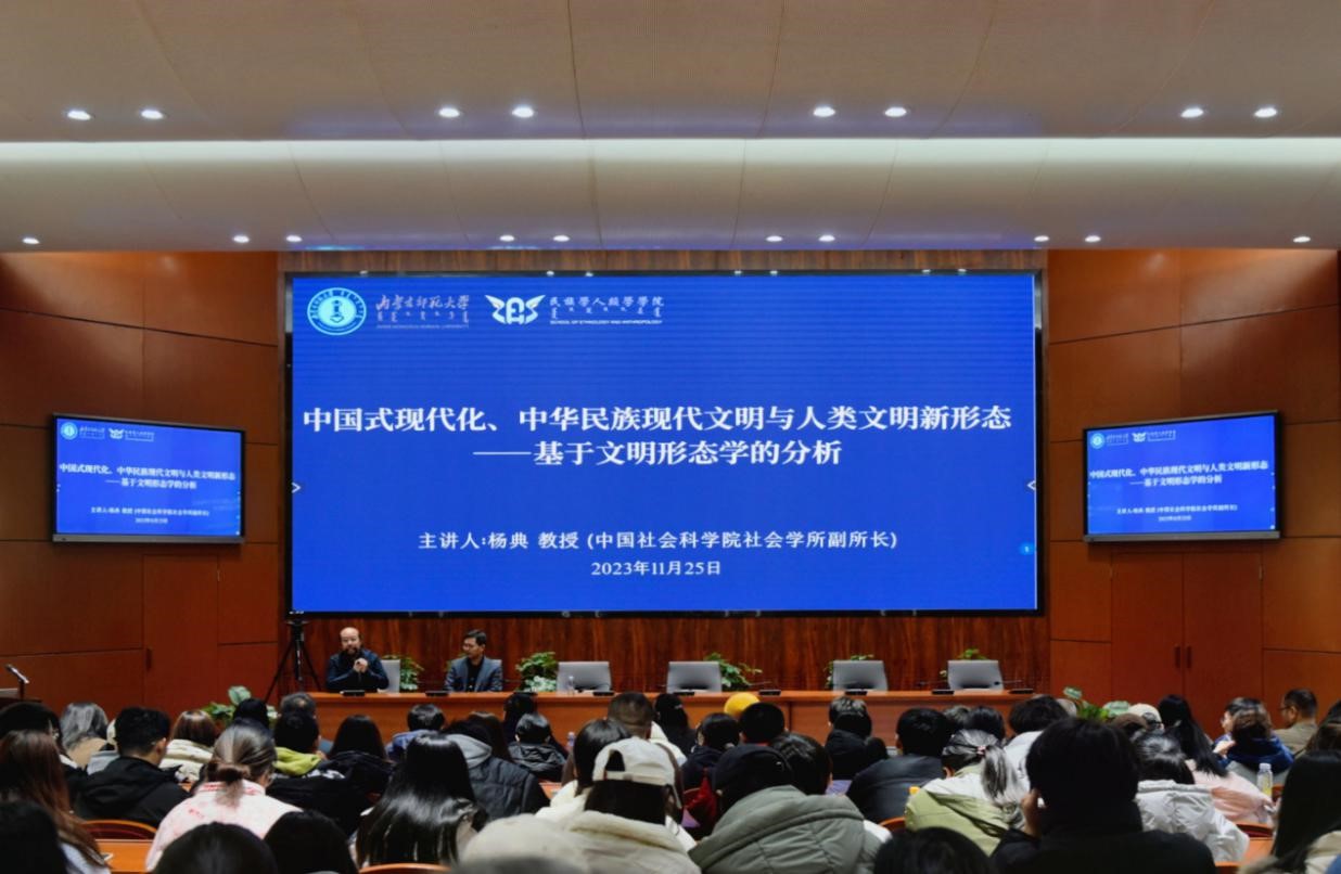 为进一步提升团队建设水平,提高人才培养质量,加强国内学术交流与合作,11月25日,公司隆重邀请中国社会科公司社会学所副所长、博士生导师、《社会学研究》副主编杨典教授在赛罕校区信息楼报告厅举行以“中国式现代化、中华民族现代文明与人类文明新形态——基于文明形态学的分析”为题的学术讲座。伟德科技处副处长刘伟、公司党委书记包凤兰、党委副书记副经理陆一琼,以及公司老师和同学们约200余人参加讲座。讲座由常宝教授主持。