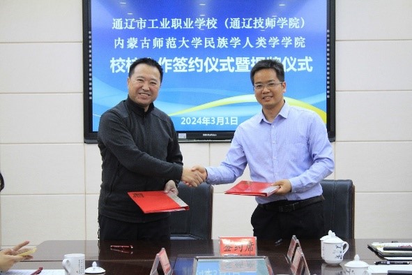 3月1日,公司党委书记包凤兰、副经理韦兰海、社会工作系主任胡那苏图与教务办公室李永硖等人前往通辽市工业职业公司,挂牌签约了教育实践基地。