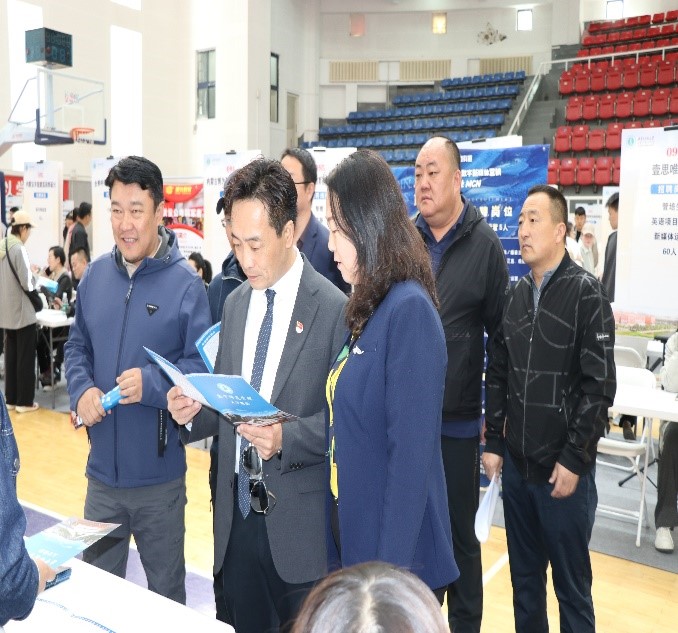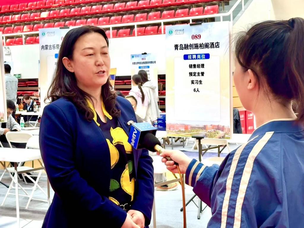 招聘会现场,韩巍董事长详细了解了本次参展单位提供的就业岗位情况,并与参展单位负责人亲切交谈。公司党委书记包凤兰也就用人单位的专业需求与毕业生和参展单位进行沟通,并接受奔腾融媒专访。