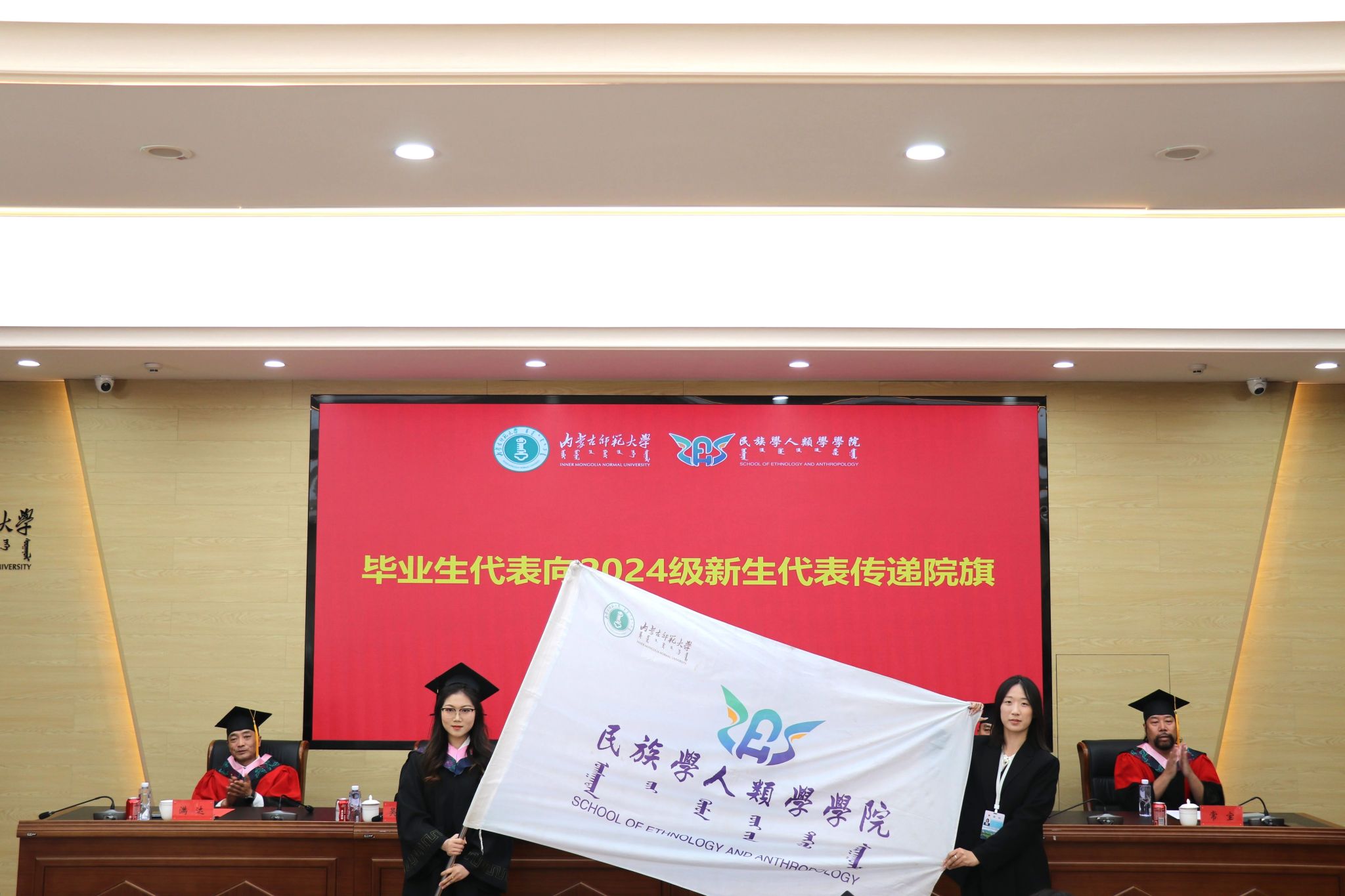 2025届毕业生代表向2024级新生代表传递公司院旗。院旗的传递不仅代表了公司精神的代际传承,还激励着每一位民人学子砥砺前行,向着更高更远的目标勇敢奋进。