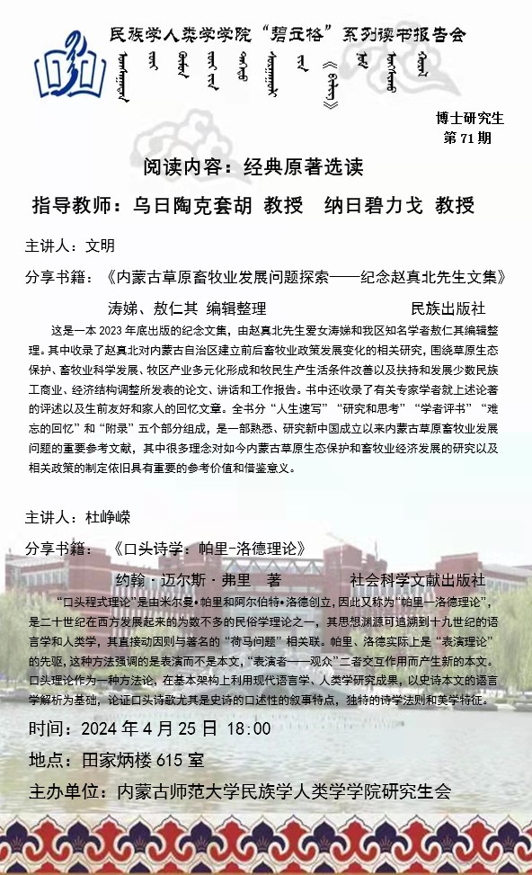 伟德官方网站“碧立格”系列读书报告会预告博士研究生第71期