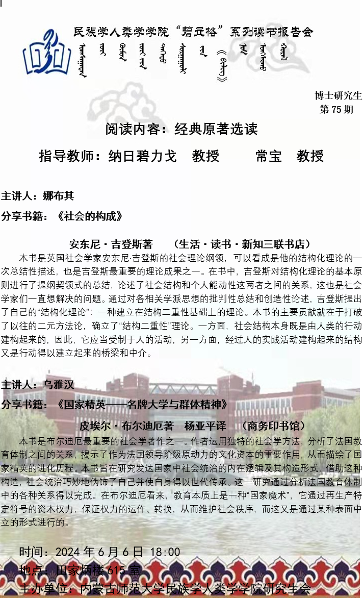 伟德官方网站“碧立格”系列读书报告会预告博士研究生第75期