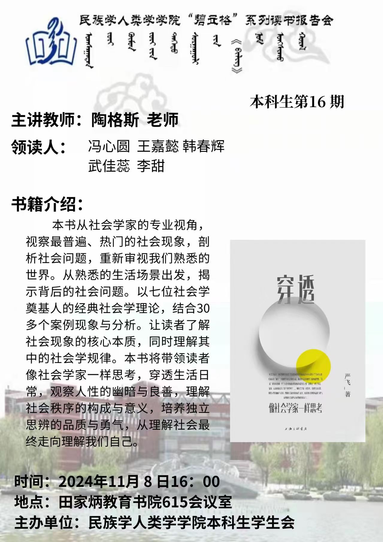 伟德官方网站“碧立格”系列读书报告会预告 本科生第16期