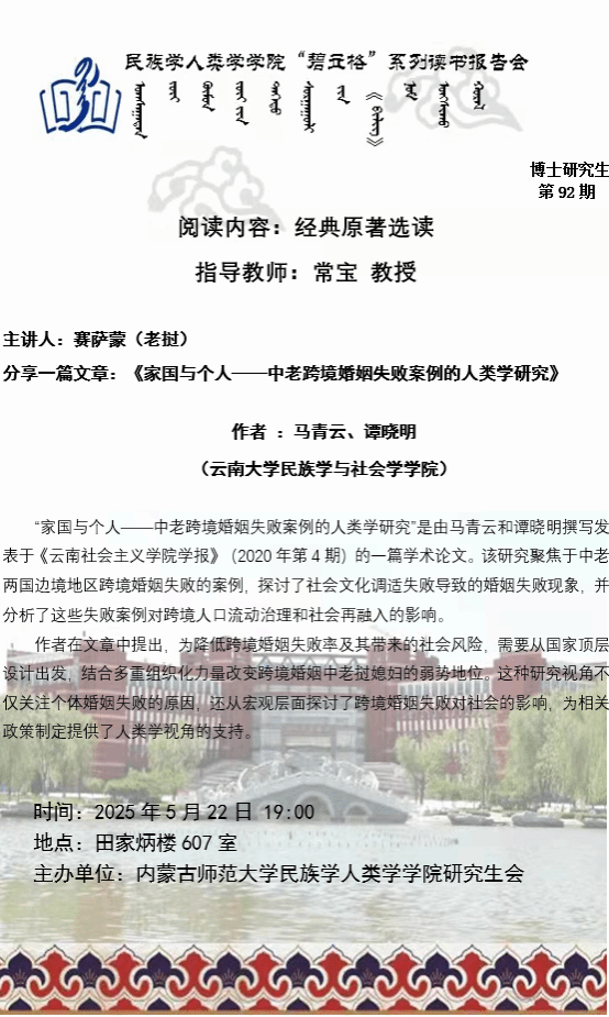 伟德官方网站“碧立格”系列读书报告会预告博士研究生第92期