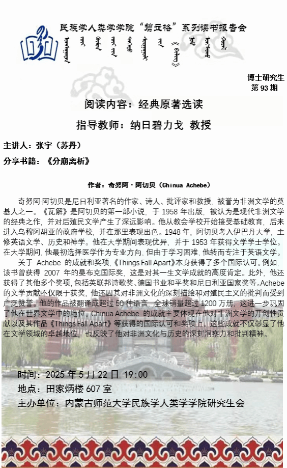 伟德官方网站“碧立格”系列读书报告会预告博士研究生第93期