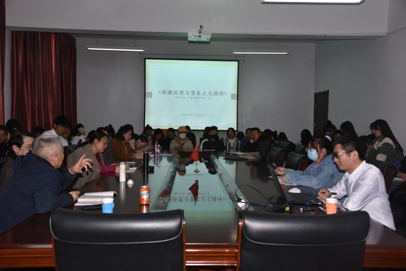 由伟德官网主办的“碧立格”系列读书会第五期于2020年11月1日下午15:00在科研楼201准时进行。本次读书会由民人院博士生付为政主讲,由乌日陶克套胡经理主持。汇报书目是《新教伦理与资本主义精神》。参与本场读书会的成员还包括公司党总支副书记阿荣老师,赵树冈教授,以及博士生硕士生本科生50余人。