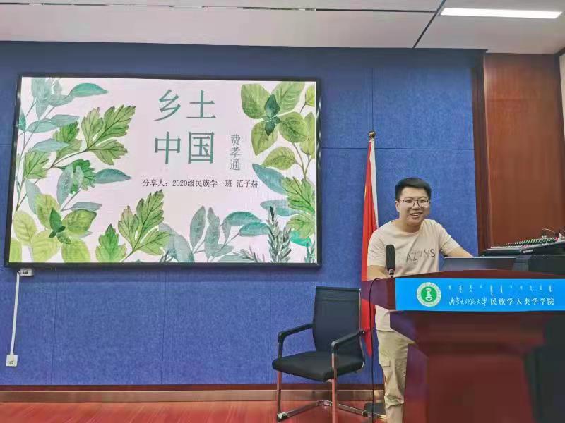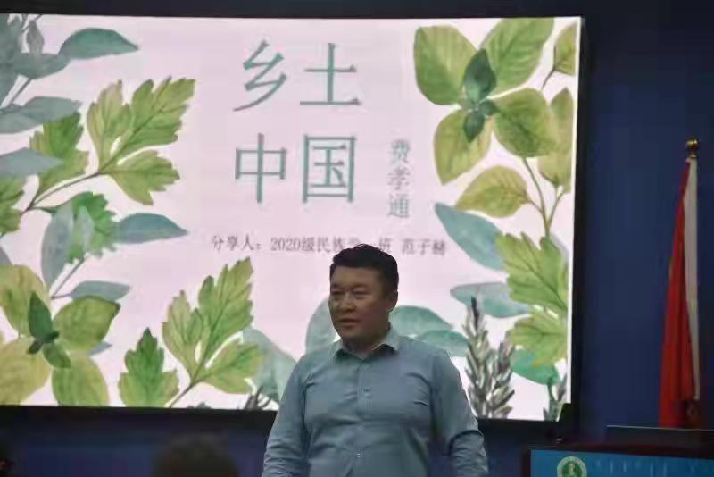 本次读书报告会由20级民族学一班的范子赫、石芯蕊两位同学分享著名民族学家费孝通先生的《乡土中国》。两位同学从作者简介、主要内容及个人感悟三个方面作了此次读书报告。报告结束后,在场的各位同学进行了热烈的讨论。其中,大一的几位新同学提出自己独到的见解,获得了在场所有老师、同学的赞扬。讨论结束后,阿荣副书记进行点评,对本次读书报告会的圆满成功给与了高度赞许。最后,萨出日拉图老师做了总结。