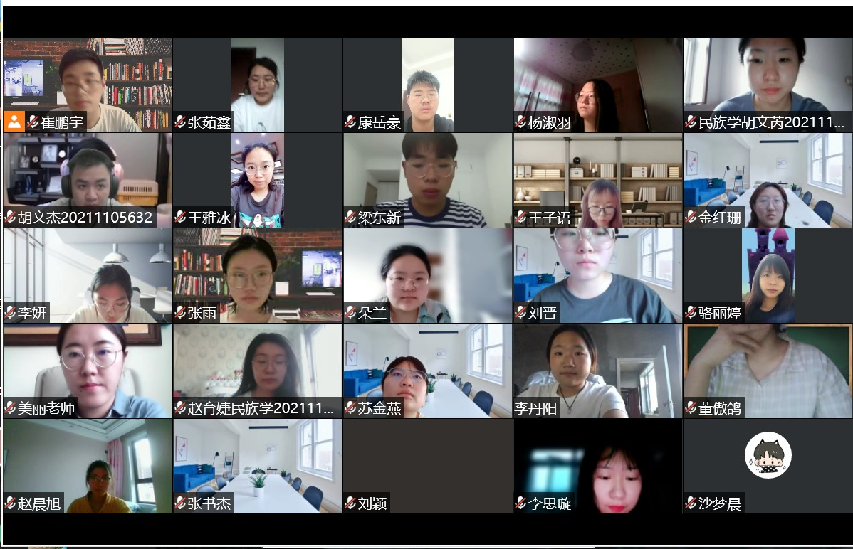 6月10日19:00,伟德官方网站2021级民族学本科班以线上的形式开展了第八期“碧立格”系列读书报告会。指导老师——包美丽老师线上同步进行指导,2020级袁金浩学长也受邀参加此次读书报告会,张茹鑫同学进行线上主持,董傲鸽、杨舒羽两位同学进行书籍《看见》的分享。