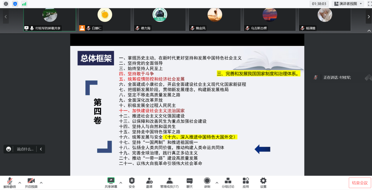 2022年11月6日19:00,伟德官方网站2021级、2022级博士研究生通过“腾讯会议”举行了第47期读书报告会。本次读书报告会中白娜仁同学和付桂军同学分别分享了《像人类学家一样思考》和《习近平谈治国理政》第四卷两本书。