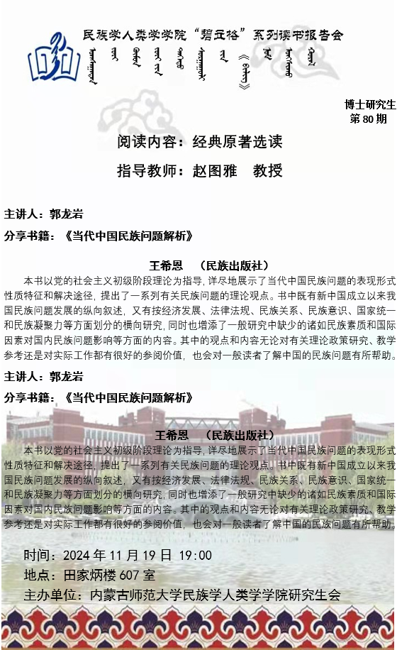 伟德官方网站“碧立格”系列读书报告会预告博士研究生第80期