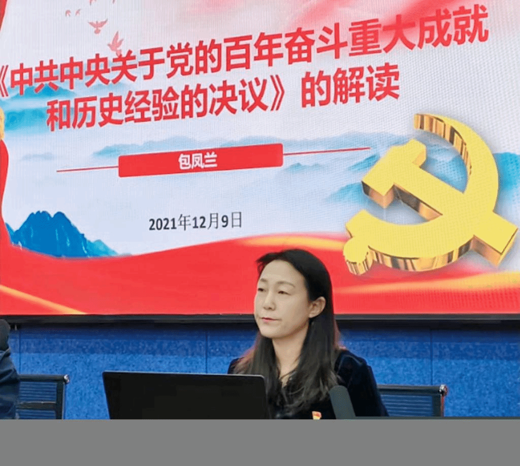 12月9日下午,公司党委书记包凤兰在田楼615学术报告厅为全院教工解读党的十九届六中全会精神。会议由公司党委副书记、经理乌日陶克套胡教授主持。