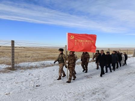 公司教工第一支部党员代表参与边境牧区巡边护边行动,由驻地部队带队介绍辖区内边界、便道通行等具体情况,对重点区域进行巡逻,实地勘察了草场、边境铁丝网等情况,全方位掌握边界地形地貌变化及管控中存在的新情况。
